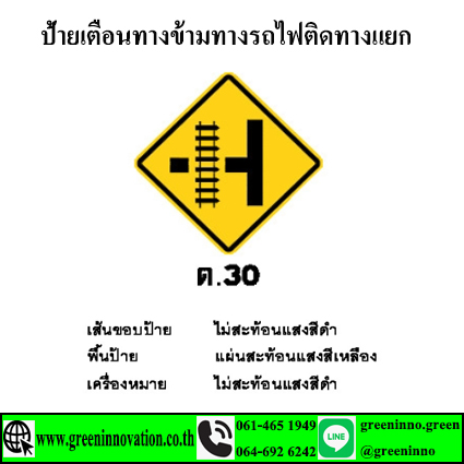 ป้ายเตือนทางข้ามทางรถไฟติดทางแยก รหัสสินค้า GT30 ราคา : สอบถาม .- ประเภท : ป้ายเตือนแบบมาตรฐานจราจร