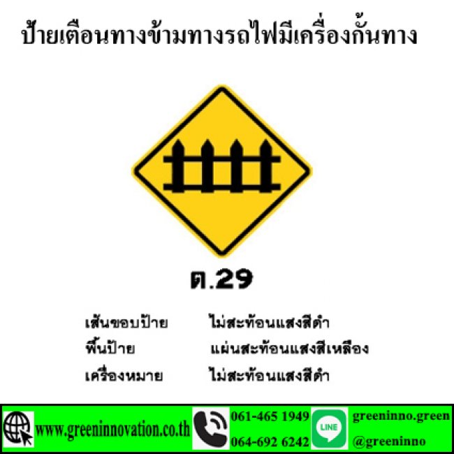 ป้ายเตือนทางข้ามทางรถไฟมีเครื่องกั้นทาง รหัสสินค้า GT29 ราคา : สอบถาม .- ประเภท : ป้ายเตือนแบบมาตรฐานจราจร