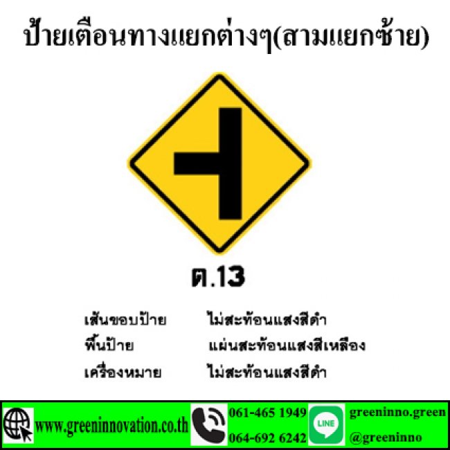 ป้ายเตือนทางแยกต่างๆ(สามแยกซ้าย) รหัสสินค้า GT13