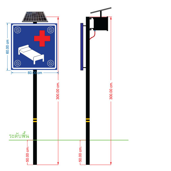 - ขนาดของป้าย 60 x 60 cm. หรือ 75 x 75 cm.