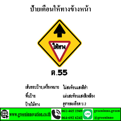 ป้ายเตือนให้ทางข้างหน้า รหัสสินค้าGT55 ราคา : สอบถาม .- ประเภท : ป้ายเตือนแบบมาตรฐานจราจร ป้ายเตือนให้ทางข้างหน้า