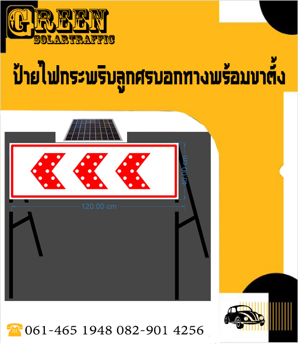 ป้ายไฟกระพริบเตือนลูกศรบอกทาง พร้อมขาตั้ง พลังงานแสงอาทิตย์ ราคา : สอบถาม .- ประเภท : NEW PRODUCT ป้ายไฟกระพริบเตือนลูกศรบอกทาง พร้อมขาตั้ง พลังงานแสงอาทิตย์