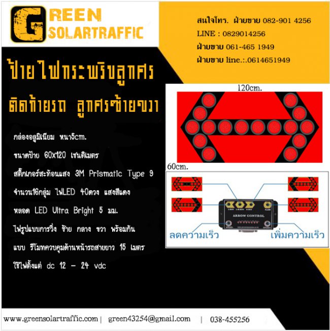 ป้ายไฟกระพริบลูกศรติดท้ายรถ ลูกศรซ้ายขวา ราคา : สอบถาม .- ประเภท : NEW PRODUCT ป้ายไฟกระพริบลูกศรติดท้ายรถ ลูกศรซ้ายขวา
