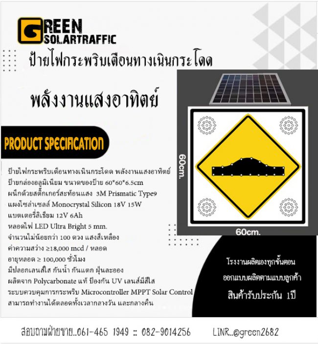 ป้ายไฟกระพริบเตือนทางเนินกระโดด พลังงานแสงอาทิตย์ ราคา : สอบถาม .- ประเภท : NEW PRODUCT ป้ายไฟกระพริบเตือนทางเนินกระโดด พลังงานแสงอาทิตย์