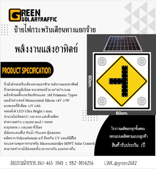 ป้ายไฟกระพริบเตือนทางแยกซ้าย พลังงานแสงอาทิตย์ ราคา : สอบถาม .- ประเภท : NEW PRODUCT ป้ายไฟกระพริบเตือนทางแยกซ้าย พลังงานแสงอาทิตย์
