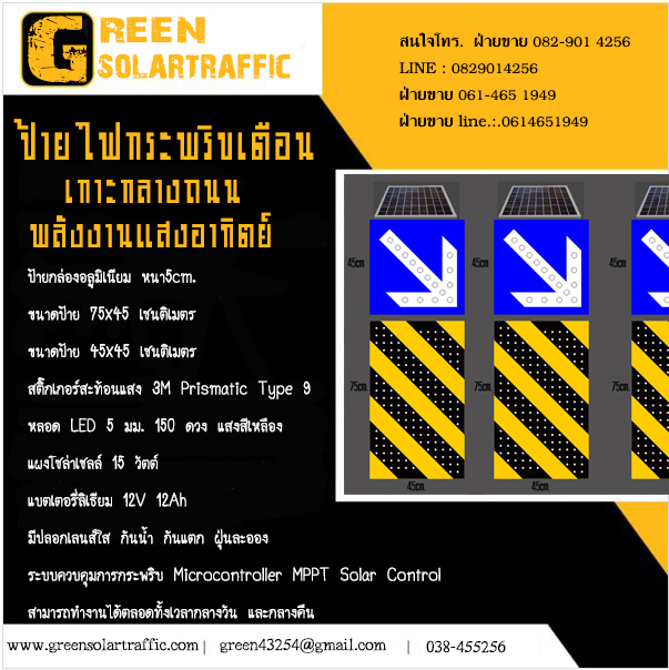 ป้ายไฟกระพริบเตือนเกาะกลางถนน พลังงานแสงอาทิตย์ ราคา : สอบถาม .- ประเภท : NEW PRODUCT ป้ายไฟกระพริบเตือนเกาะกลางถนน พลังงานแสงอาทิตย์ ป้ายกล่องอลูมิเนียม หนา5cm.