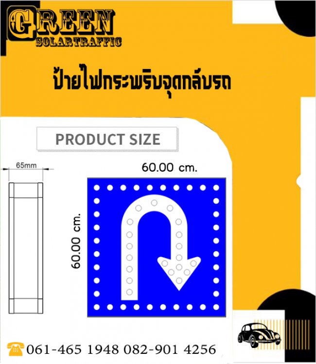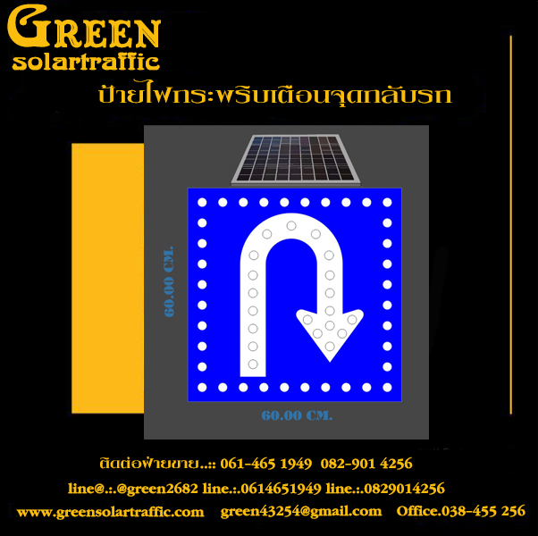 ป้ายไฟกระพริบเตือนจุดกลับรถ พลังงานแสงอาทิตย์ ราคา : สอบถาม .- ประเภท : NEW PRODUCT ป้ายไฟกระพริบเตือนจุดกลับรถ พลังงานแสงอาทิตย์