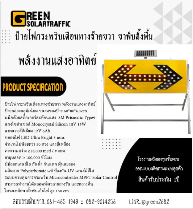 ป้ายไฟกระพริบเตือนทางซ้ายขวา พลังงานแสงอาทิตย์ ราคา : สอบถาม .- ประเภท : NEW PRODUCT ป้ายไฟกระพริบเตือนทางซ้ายขวา พลังงานแสงอาทิตย์