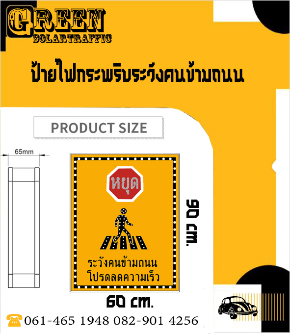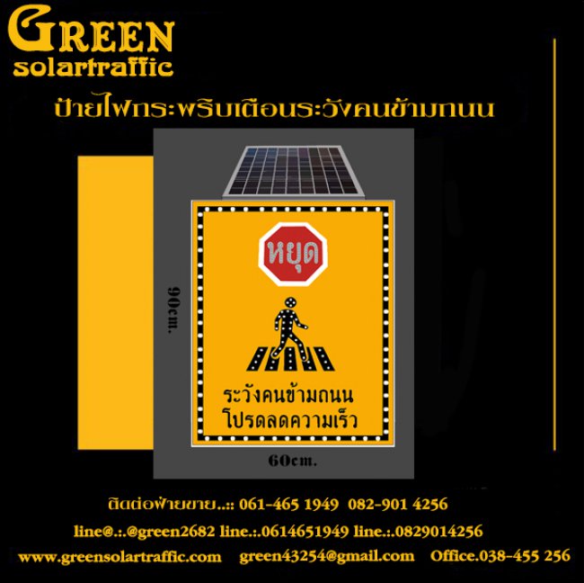 ป้ายไฟกระพริบเตือนระวังคนข้ามถนนโปรดลดความเร็ว พลังงานแสงอาทิตย์