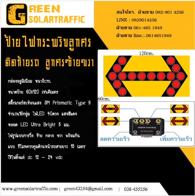 ป้ายไฟกระพริบลูกศรติดท้ายรถ ลูกศรซ้ายขวา ราคา : สอบถาม .- ประเภท : NEW PRODUCT ป้ายไฟกระพริบลูกศรติดท้ายรถ ลูกศรซ้ายขวา