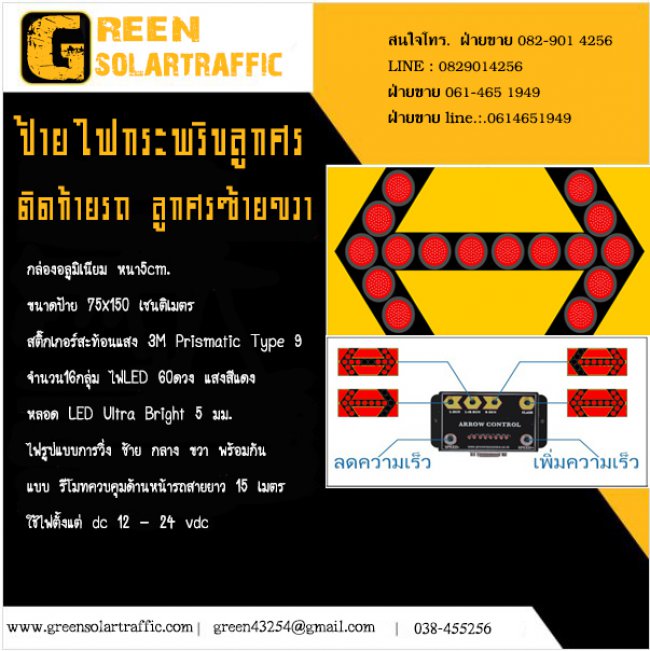 ป้ายไฟลูกศรติดท้ายรถ ลูกศรซ้ายขวา