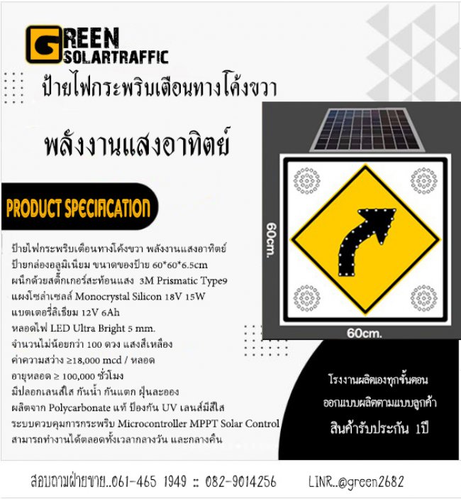 ป้ายไฟกระพริบเตือนทางโค้งขวา พลังงานแสงอาทิตย์ ราคา : สอบถาม .- ประเภท : NEW PRODUCT ป้ายไฟกระพริบเตือนทางโค้งขวา พลังงานแสงอาทิตย์