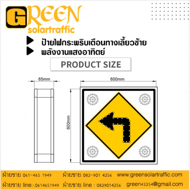 ป้ายไฟกระพริบเตือนทางเลี้ยวซ้าย พลังงานแสงอาทิตย์ ราคา : สอบถาม .- ประเภท : NEW PRODUCT ป้ายไฟกระพริบเตือนทางเลี้ยวซ้าย พลังงานแสงอาทิตย์