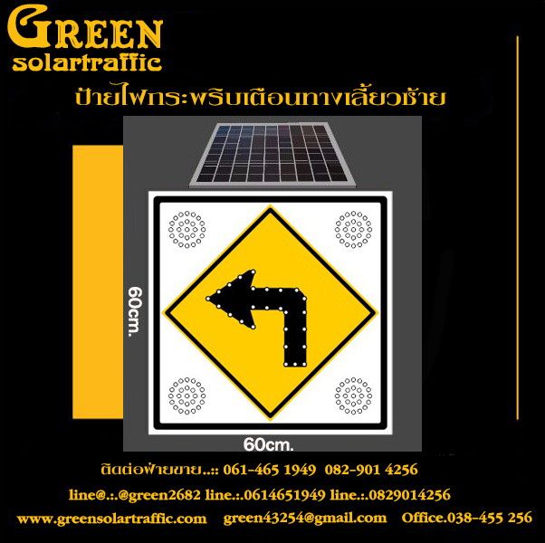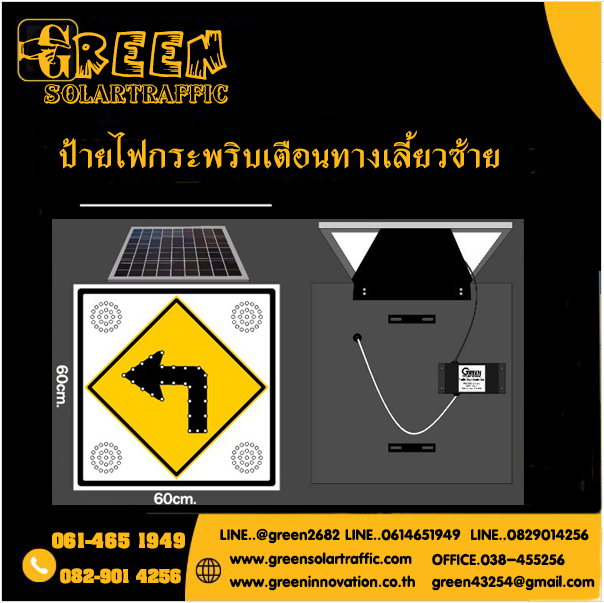 ป้ายไฟกระพริบเตือนทางเลี้ยวซ้าย พลังงานแสงอาทิตย์ ราคา : สอบถาม .- ประเภท : NEW PRODUCT ป้ายไฟกระพริบเตือนทางเลี้ยวซ้าย พลังงานแสงอาทิตย์
