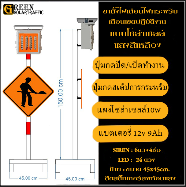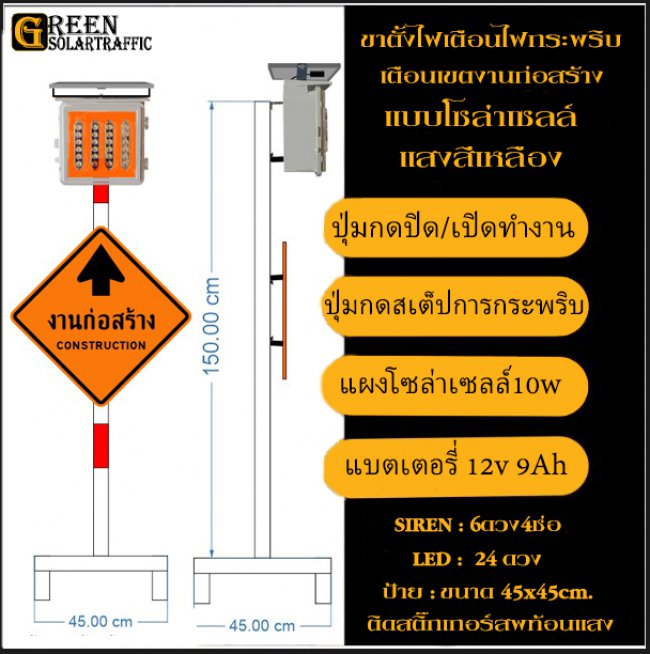 ไฟเตือนไฟกระพริบเขตงานก่อสร้าง โซล่าเซลล์ แบบขาตั้งพื้น