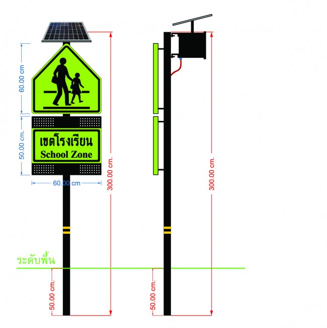 ป้ายเตือนเขตโรงเรียน พลังงานแสงอาทิตย์