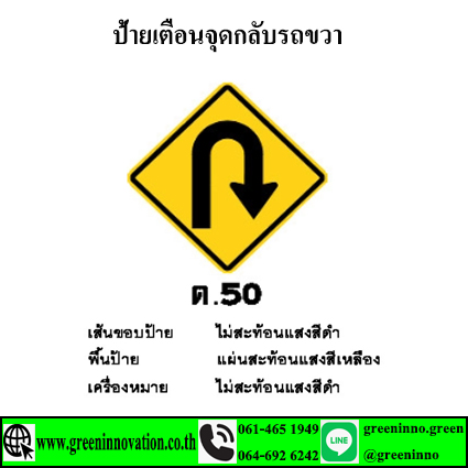 ป้ายเตือนจุดกลับรถขวา รหัสสินค้าGT50 ราคา : สอบถาม .- ประเภท : ป้ายเตือนแบบมาตรฐานจราจร
